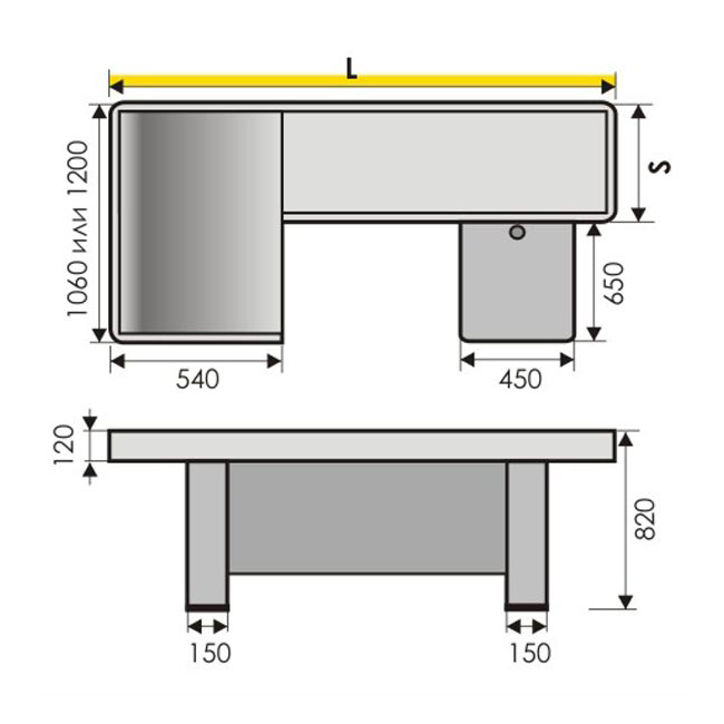 Ширина рабочей поверхности кассовых боксов (S) имеет два типоразмера - стандарт 400 мм или 500 мм под заказ +20%.